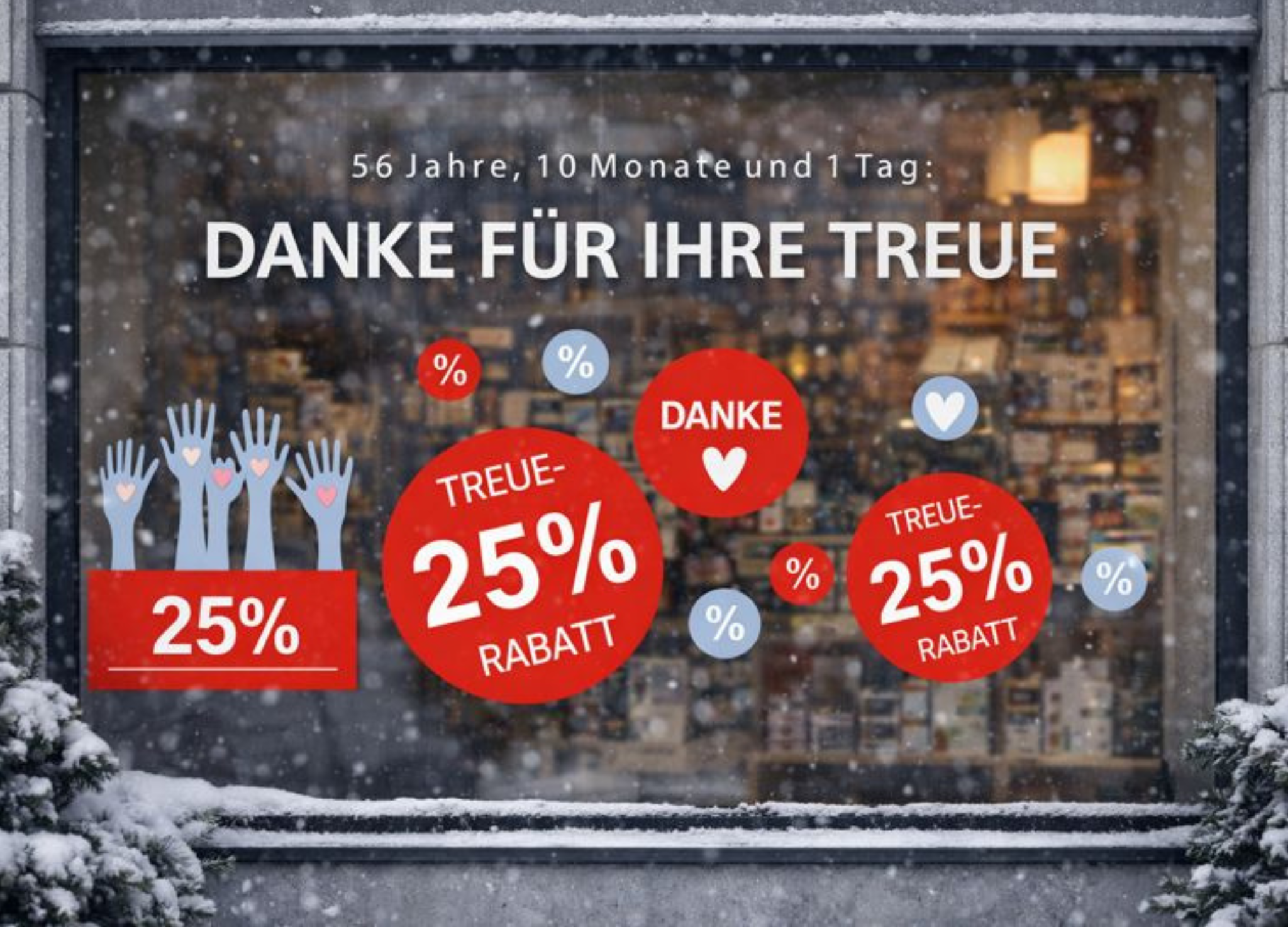 Steigern Sie Ihren Abverkauf mit unseren hochwertigen Sale-Aufklebern für Schaufenster und Verkaufsflächen. Unsere auffälligen Rabattaufkleber ziehen sofort die Aufmerksamkeit Ihrer Kunden auf sich und machen Ihre Sonderaktionen unübersehbar. Schnell produziert und deutschlandweit geliefert – perfekt für schnelle Verkaufsaktionen, Saisonverkäufe und Clearance-Verkäufe. Setzen Sie auf maximale Sichtbarkeit und verkaufen Sie Ihre Ware schneller!