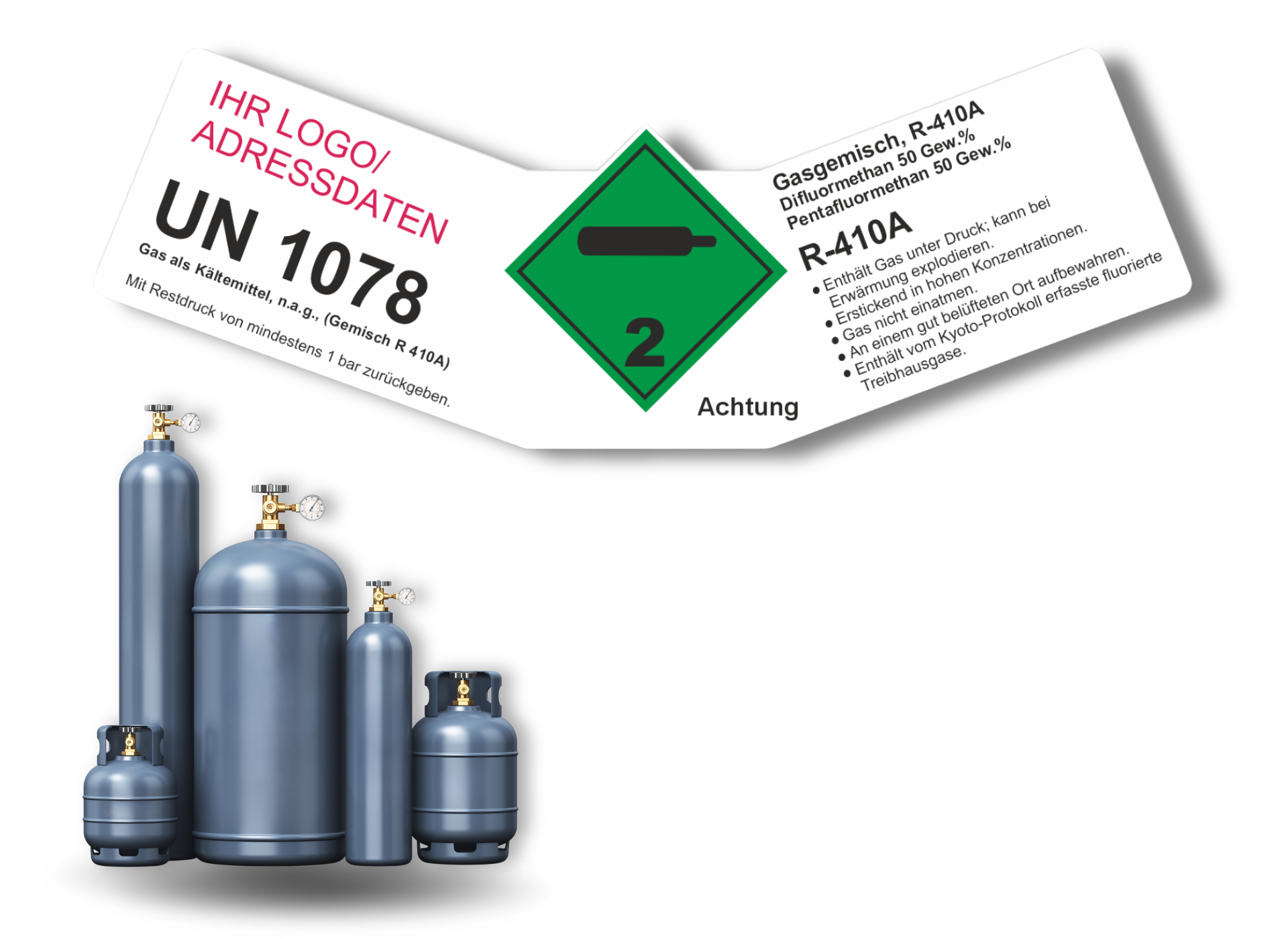 Kältemittel Gemisch R-410A UN 1078 | Gefahrgut Kennzeichnung Aufkleber | ADR & DIN EN ISO | Personalisierung