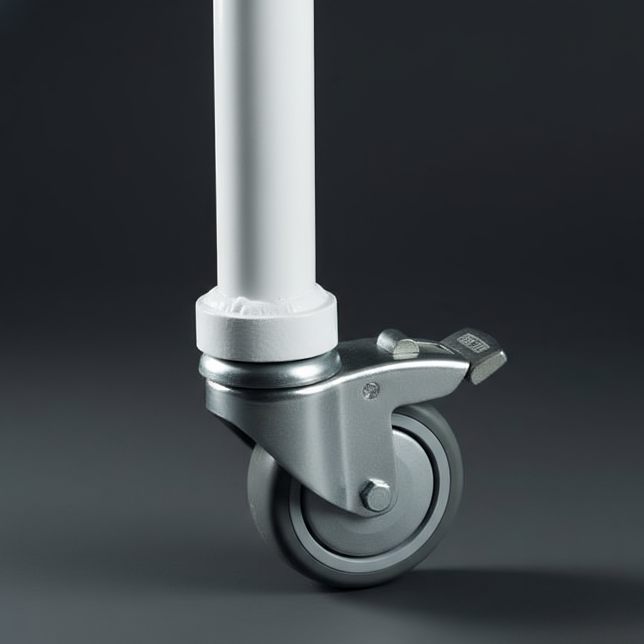 ◗ Optionales Zubehör: 2 Stk. 3" Räder ohne Bremsen für flexible Mobilität (inkl. 2 Buchsen)